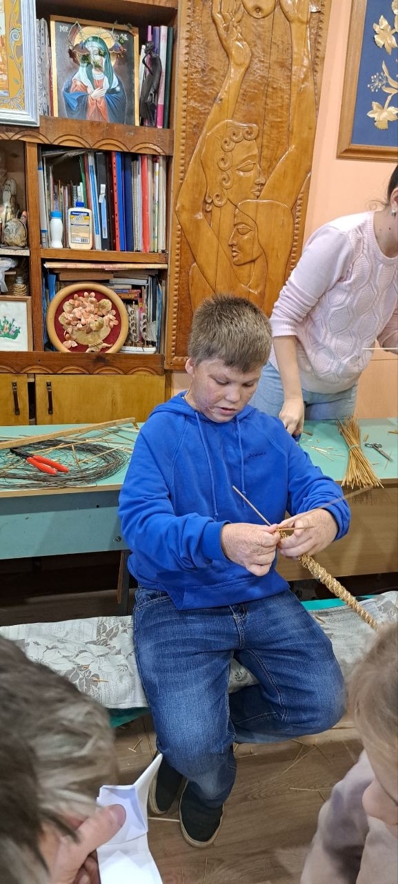 25.12.2025г. На занятиях по соломоплетению-ребята собирали елочные бусы из соломки для новогодней Елки, плели елочные игрушки,