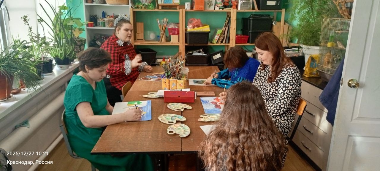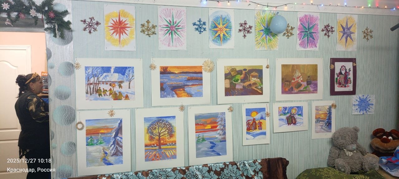 26.12.2025 и 27.12.2025 Педагогом по живописи- Беломыцевым Дмитрием Анатольевичем , совместно с волонтером, проведено 10 часов групповых занятий по ознакомлению с зимними казачьими праздниками и традициями, просмотрели картины русских художников на темы "Зимних игрищ и праздников", подготовили наброски работ, провели мастер-класс "Рождественская Звезда " , завершили конкурсные новогодние работы, оформили внутри здания работами кабинеты и актовый зал. К завершению дня , все были уставшие, но счастливые.